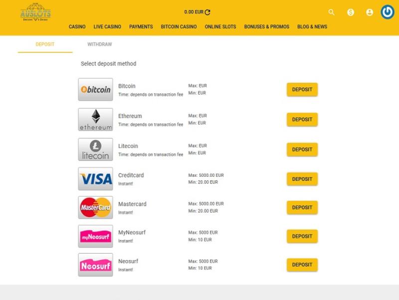 该网站的银行系统非常可靠,支持 Visa、MasterCard、Skrill、Neteller、Paysafecard 和 ecoPayz 等多种支付方式的存取款。电子钱包的到账速度为 24-48 小时,而其他支付方式则需要更长时间。