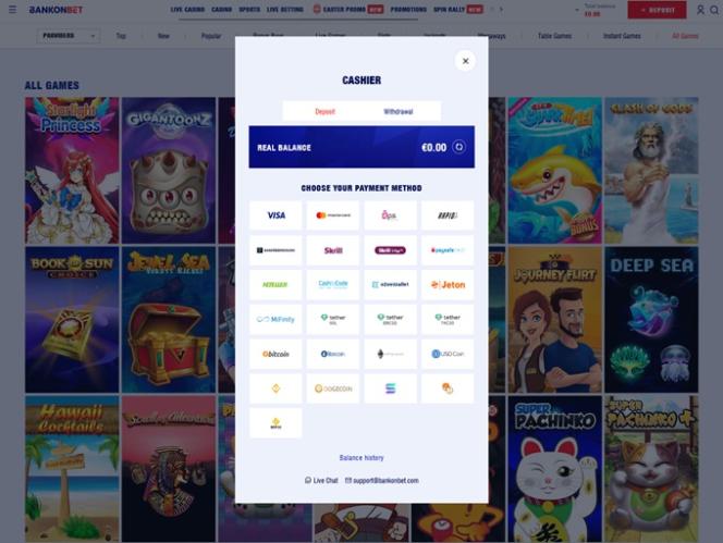 非英语母语人士也无需担心感到困惑。BankonBet 赌场提供葡萄牙语、挪威语、芬兰语、波兰语、德语、法语、西班牙语、意大利语和土耳其语等多种语言版本。我们还想指出,该平台已针对智能手机博彩体验进行了全面优化。Android 和 iOS 设备无需单独安装应用程序即可原生运行所有游戏。