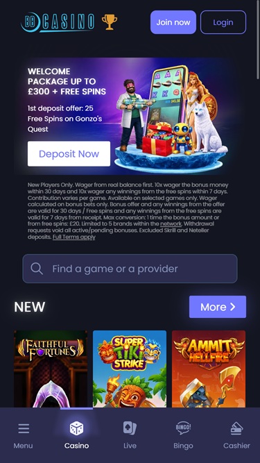 BB 赌场为新玩家提供丰厚的奖金套餐,适用于赌场前三次存款。