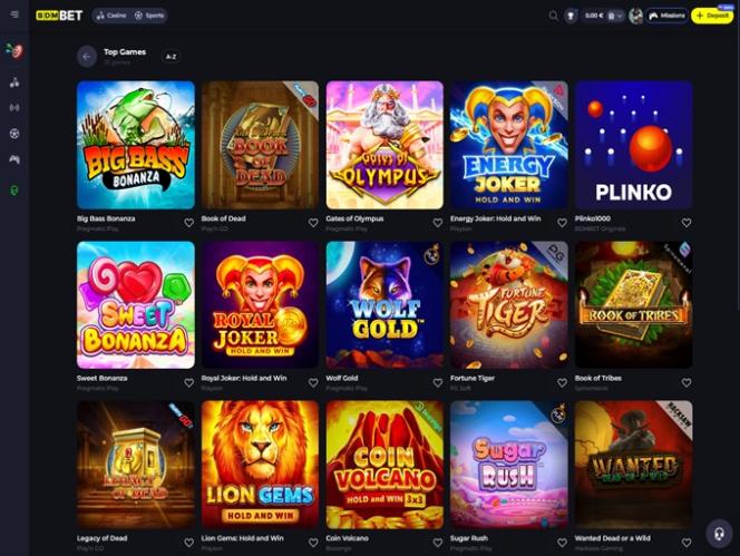 在赌场的左上角,玩家只需点击一下即可访问所有重要页面和游戏类别。此外,他们还可以从这里切换到网站的体育博彩版块。该版块涵盖了现代体育博彩的所有内容,包括所有促销活动、投注选项、热门游戏选择等等。