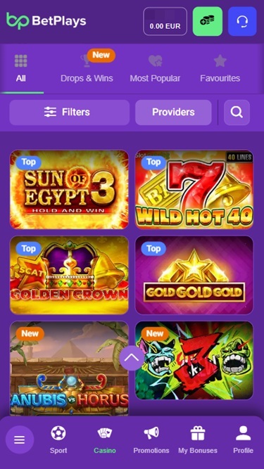 Bet Plays 的老虎机部分是最主要的,它充满了娱乐性和趣味性的在线老虎机游戏,对于完全的新手和经验丰富的在线赌场玩家来说都很有吸引力和趣味性。