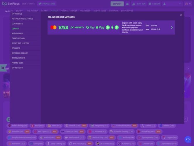 Bet Plays Casino 支持最流行的加密货币和加密支付方式,而传统赌客也可以使用他们最喜欢的在线支付方式。