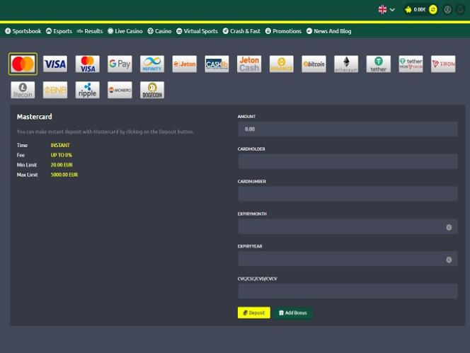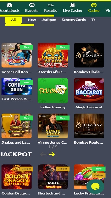 赌徒将能够获得有用的信息并浏览赌场游戏,这些游戏分为以下类别:体育博彩、电子竞技、结果、真人娱乐场、赌场、虚拟体育、Crash & Fast、促销以及新闻和博客。
