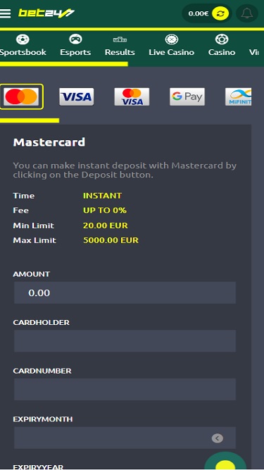 Banking银⾏业务选项 的 Bet24/7 Casino