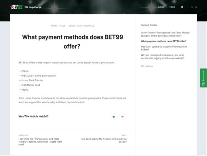 BET99 Casino Ontario 是一家在线体育博彩运营商和赌场,其所有者是一家持有安大略省酒精和博彩委员会 (AGCO) 牌照并受其监管的公司。安大略省玩家是该品牌的主要目标客户。