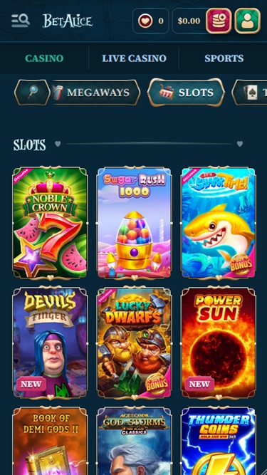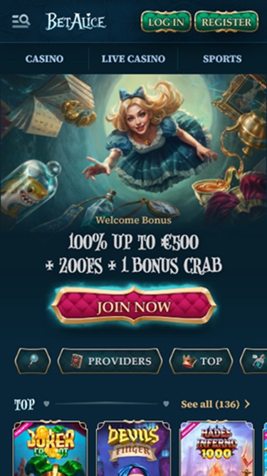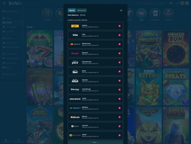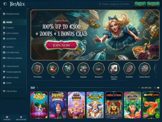BetAlice 包括赌场、真人娱乐场和体育部分,因此玩家将有机会探索各种赌场类型、尝试不同类型的奖金并参与 VIP 计划。