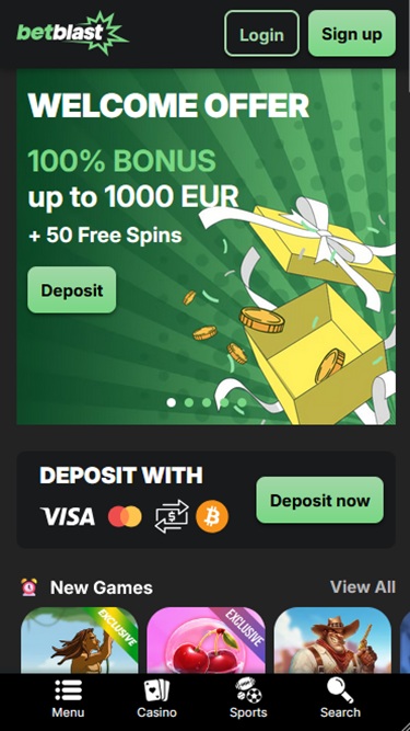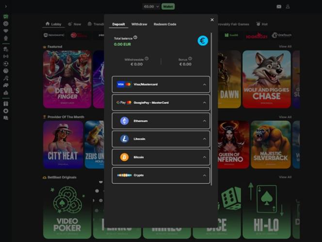 Betblast Casino 于 2024 年进入市场,通过为加拿大、德国、芬兰、挪威和丹麦玩家提供大量赌博游戏和活动,包括真钱老虎机、桌面游戏、真人荷官、原创版本、即时崩溃游戏,甚至体育博彩选项,成功吸引了大量加拿大、德国、芬兰、挪威和丹麦玩家,同时还提供强大的促销计划和众多奖金。