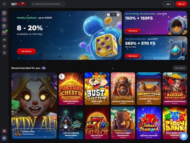 BetBona Casino 于 2025 年末推出,是一个现代化的博彩网站,主要接受来自意大利、西班牙和葡萄牙的玩家,其唯一目的是为他们提供种类繁多的赌场游戏,例如真钱老虎机、真人荷官、桌面游戏和碰撞游戏,同时还推出了一项惊人的促销计划,其中包含了丰富的独特奖金、促销活动、赛事、锦标赛和其他奖励。