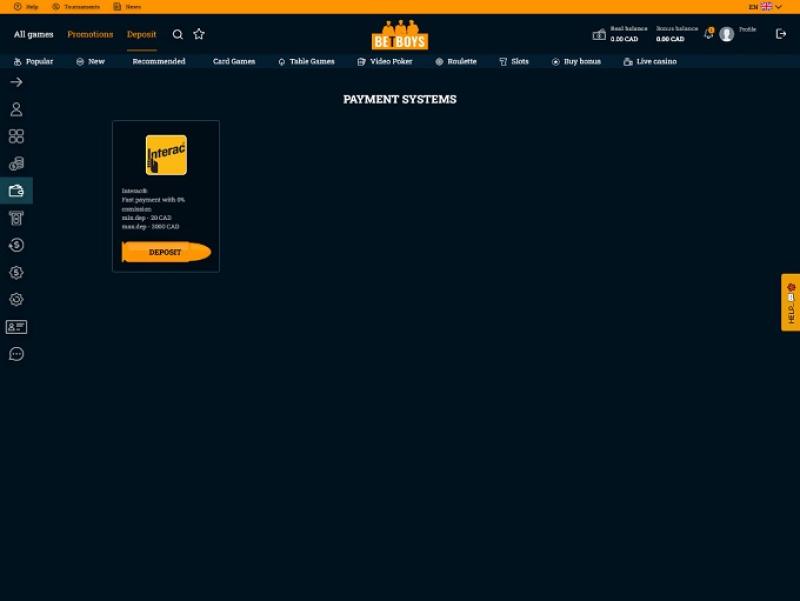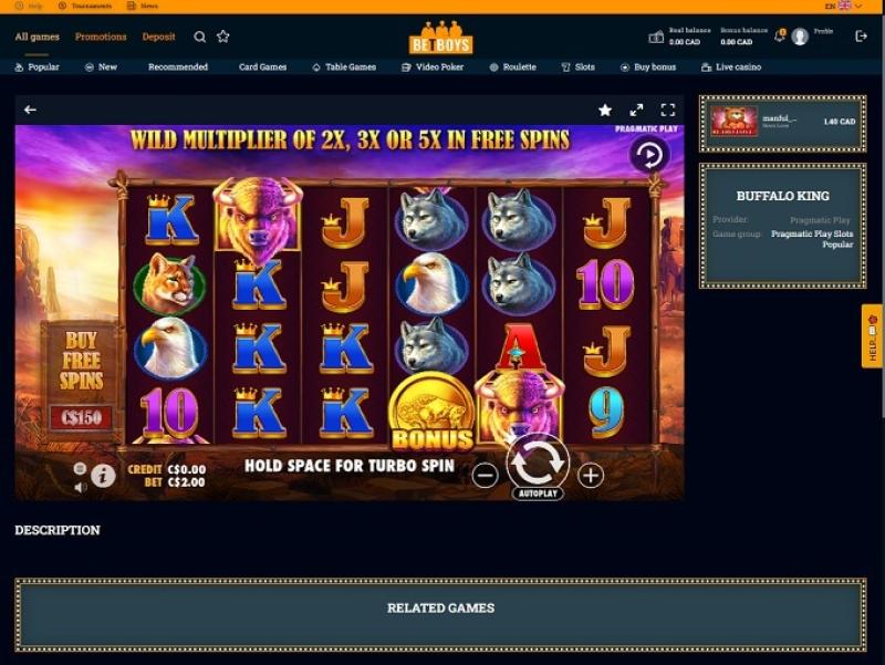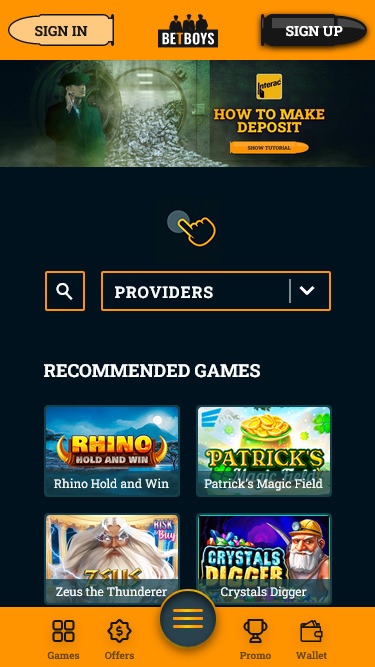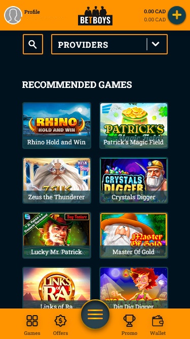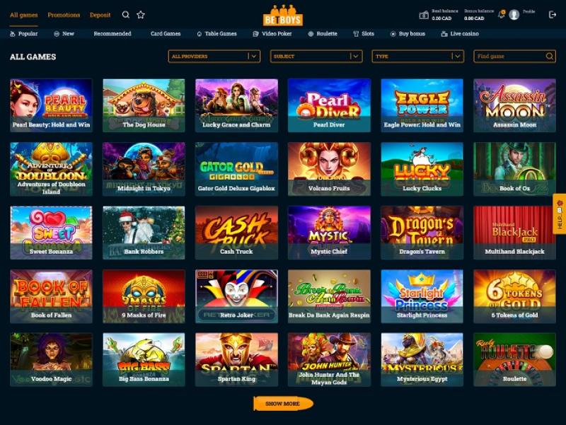 Betboys Casino 提供的所有游戏分为以下类别:推荐、购买奖金、热门、新、老虎机、轮盘赌、桌面游戏、视频扑克、纸牌游戏和真人娱乐场。