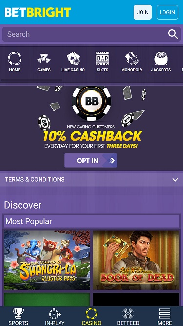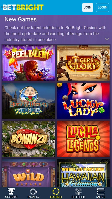 BetBright Casino 由 Microgaming, Net Entertainment, 1x2gaming, Big Time Gaming, ELK Studios, Evolution Gaming, Genesis Gaming, Rabcat, Games Global, 2by2 Gaming, Nektan and NextGen提供支持,其游戏通过基于网络的平台以及允许随时随地玩的移动页面提供。