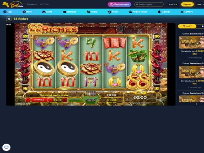 BetChain Casino 是一家在线博彩网站,成立于 2014 年,为包括美国在内的全球玩家提供比特币金融交易。该赌场的游戏选择较少,但因其快速的奖金支付速度而广受好评。