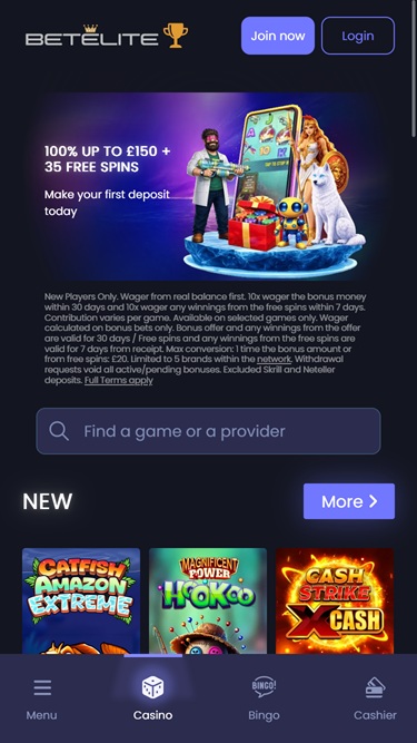 BetElite 成立于 2024 年,在博彩界算是个相对新鲜的品牌。这个赌场品牌欢迎来自芬兰的玩家,并提供全面的博彩体验,包括在线老虎机、真人荷官、桌面游戏、速成游戏以及丰富的体育博彩选项。凭借强大的促销计划和加密货币支持,这家赌场最近备受关注也就不足为奇了。