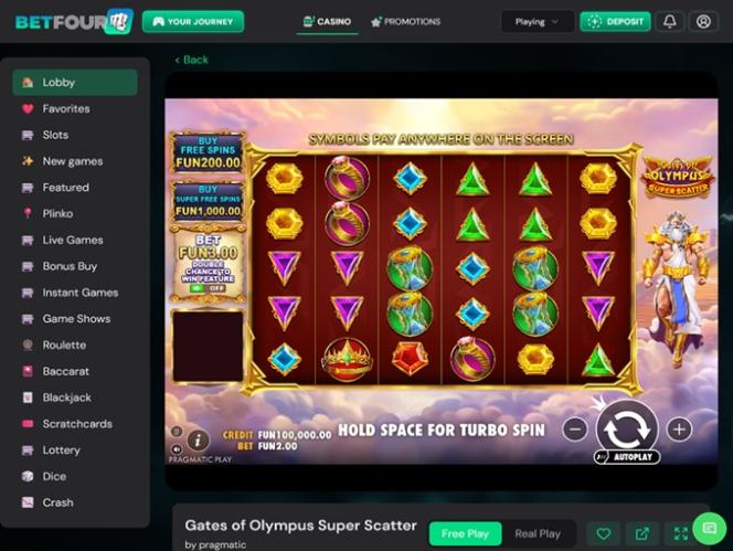 BetFourU 赌场平台拥有用户友好的界面布局,页面导航也十分便捷。除了丰厚的迎新礼包外,玩家还可以享受多种支付方式和丰富的游戏选择。