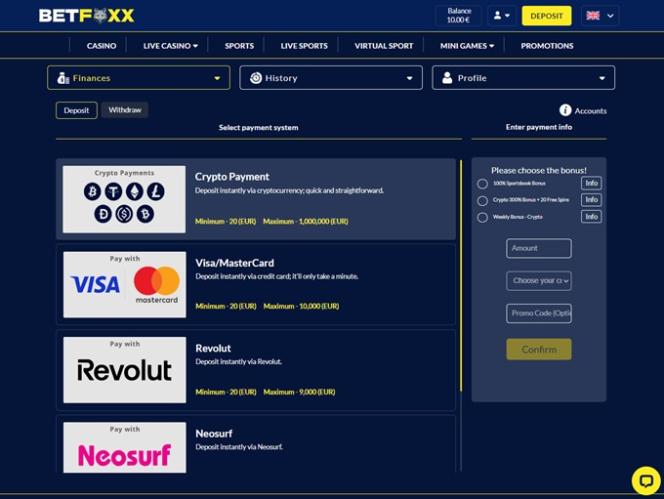 如果您是 BetFoxx 赌场的新手,您可以享受加密货币迎新优惠,以及专为体育博彩玩家和其他赌场玩家准备的迎新礼包。此外,还有每日促销活动和额外旋转机会,推荐好友加入这个在线博彩社区即可获得。