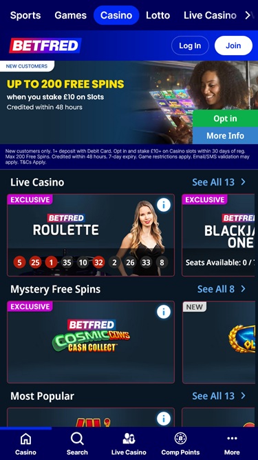 Betfred 赌场是一个多平台网站,提供标准赌场游戏、宾果游戏、乐透游戏、虚拟体育博彩和扑克等多种游戏选择。该赌场最初成立于 2005 年,提供大量由 Playtech 和 IGT 等知名公司提供支持的游戏。