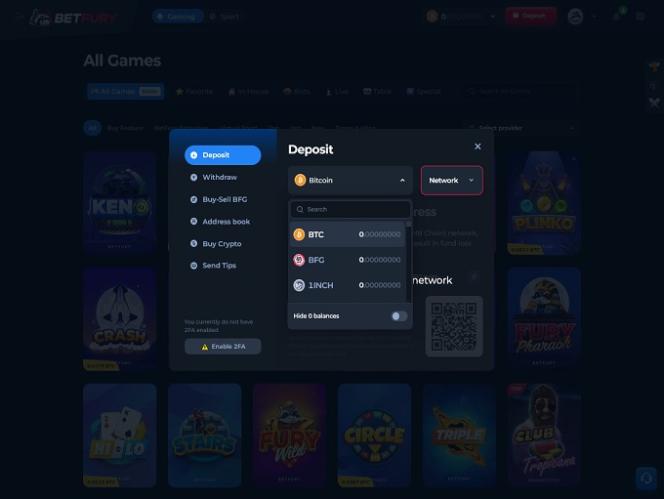 BetFury 拥有丰富的游戏产品组合,提供超过五千款由知名在线赌场软件开发商制作的游戏。其合作伙伴包括 NetEnt、BetSoft、Evolution Gaming、Wazdan 等业内巨头,以及其他提供卓越博彩解决方案和服务的知名公司。