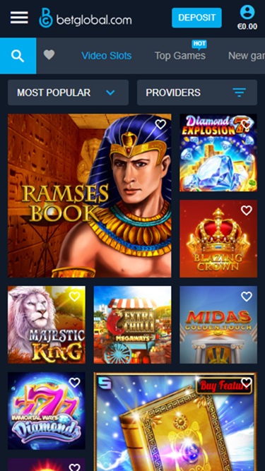 如果您最喜欢在线老虎机游戏,那么 BetGlobal 赌场将为您提供无与伦比的选择。说到这里最受玩家欢迎的游戏,您可以考虑以下游戏: Ramses Book、Diamond Explosion 7s、J Mania Golden Eggs、Majestic King、Extra Chilli Megqaways、Immortal Wave Diamonds、Blazing Crown、Book of Demigods ll、Lady Wolf Moon Megaways、Midas Golden Touch 和 Crazy Diamonds。