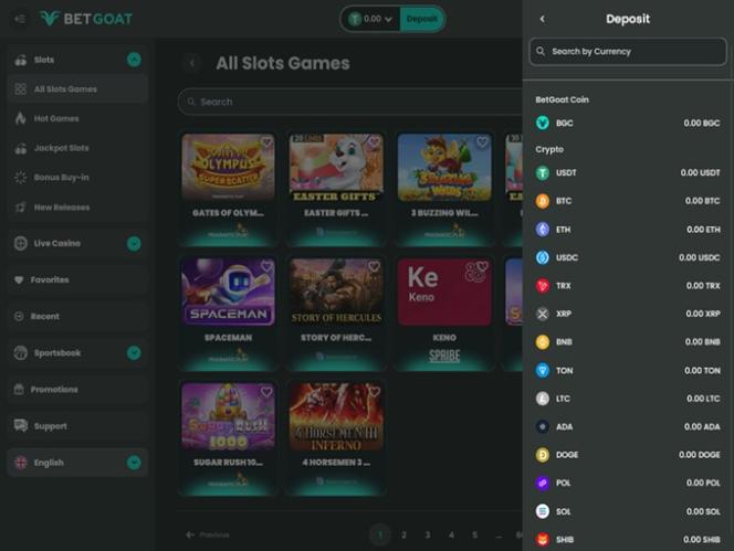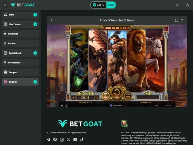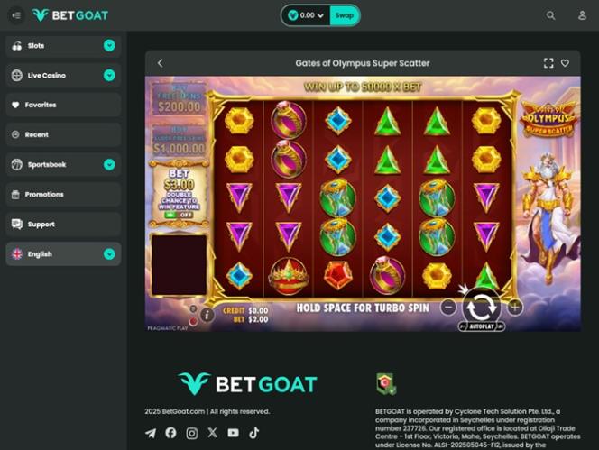 正如品牌名称所示,这家在线赌场的主要吉祥物是一只山羊,你会在整个环境中看到大量以山羊为主题的华丽图案。该网站采用深色背景和蓝色色调组成的醒目配色方案,而用户界面则允许玩家轻松浏览所有游戏和版块。
