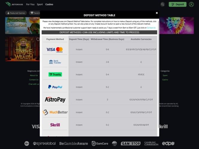 Betgrouse Casino 与知名的iGaming 公司合作,打造高质量的游戏内容。其合作伙伴包括一些在线博彩先驱,例如 Microgaming,以及众多其他知名的赌场软件开发商,例如 Evolution Gaming、NetEnt、Quickspin、Spinomenal……