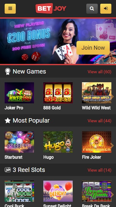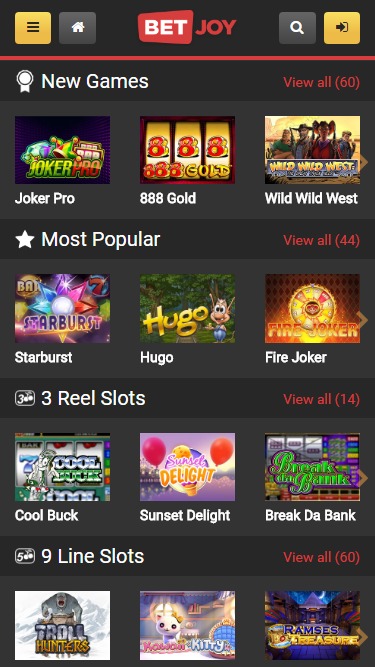 BETJOY 赌场由 Microgaming, Net Entertainment, BetSoft, 1x2gaming, Big Time Gaming, ELK Studios, lightningboxgames, Play'n GO, Thunderkick, Endorphina, GameArt, Pragmatic Play, Games Global, GamesOS and NextGen提供支持,其游戏通过网页平台提供,您可以通过网页浏览器直接访问。此外,我们还提供移动网站,方便您通过智能手机或平板电脑畅玩。