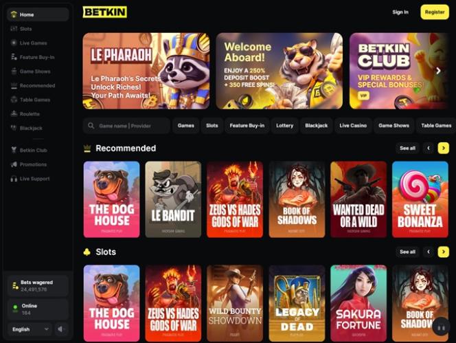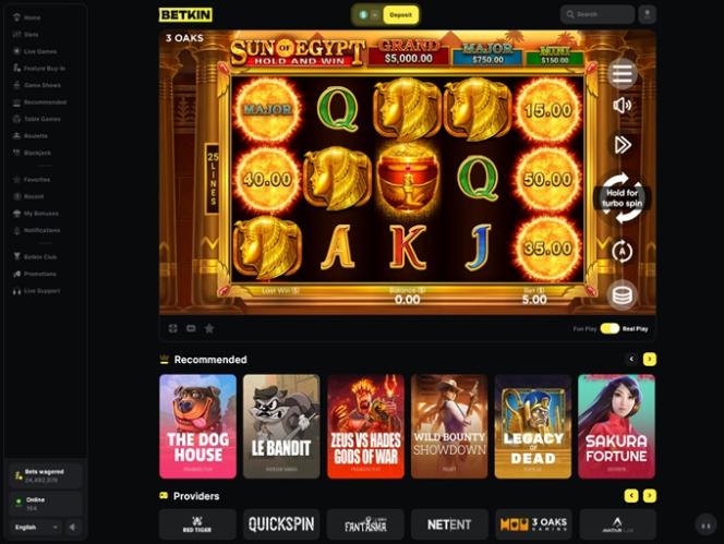 对于主要对真钱老虎机感兴趣的玩家来说,Betkin Casino 绝对不缺精彩选择。该品牌已成功运营多款在线老虎机,因此即使是最资深的玩家也会对其提供的服务感到满意。如果您不确定该玩什么,请务必查看以下这些备受欢迎的玩家推荐: