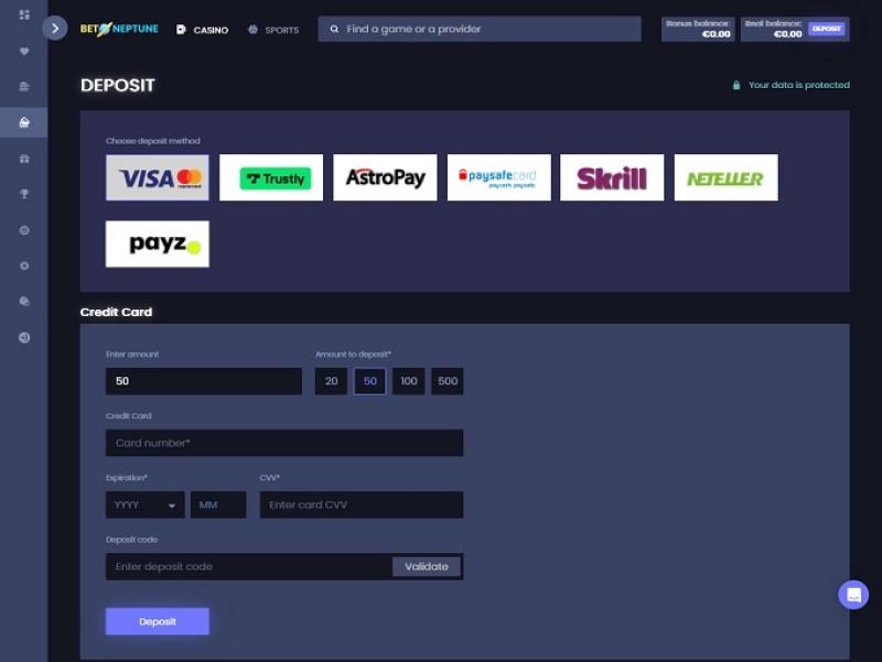 BetNeptune 是一个安全的在线目的地,采用最新的可用技术构建,并依靠 SSL 加密为玩家提供数据保护。