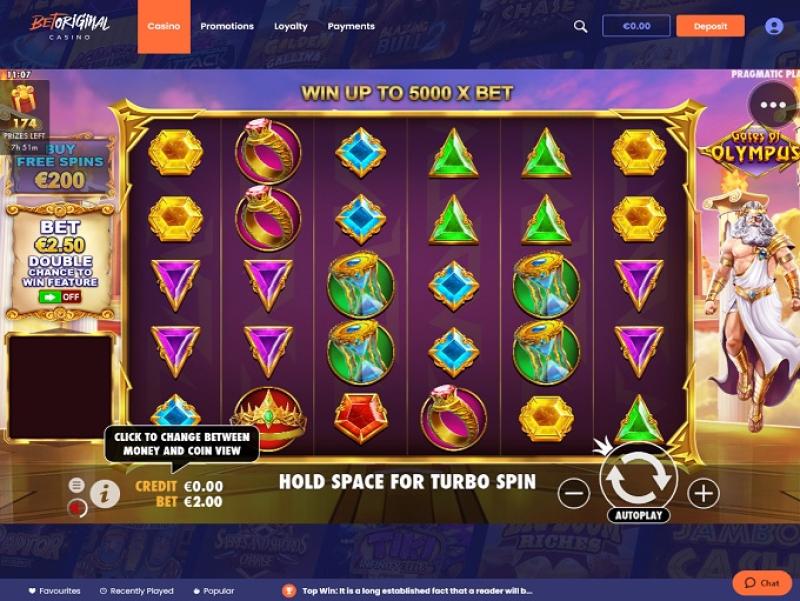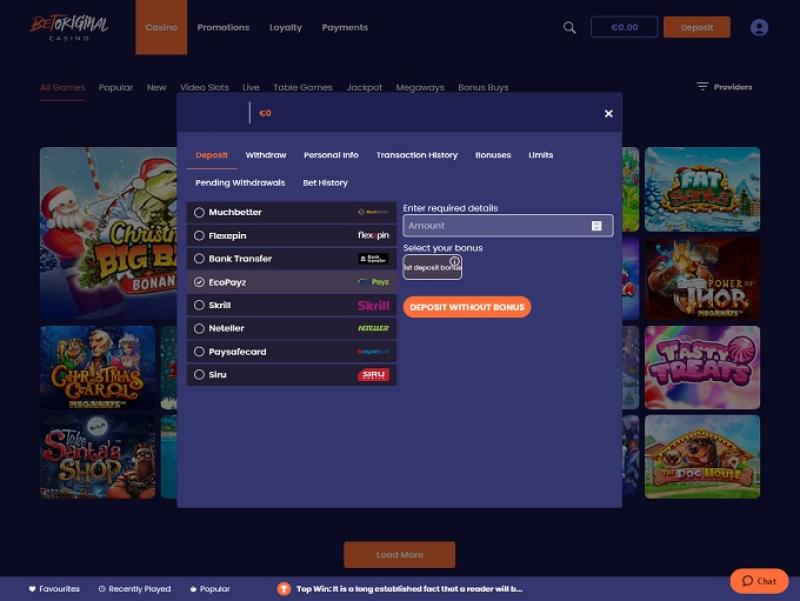 BetOriginal 是一家在线赌场,为玩家提供海量游戏。其内容由一些赌场软件巨头提供,但运营商的成功并非总是取决于游戏数量。选择合适的游戏名称也同样重要,甚至更为重要。BetOriginal 在这方面也同样出色。