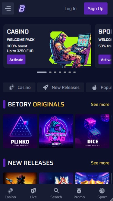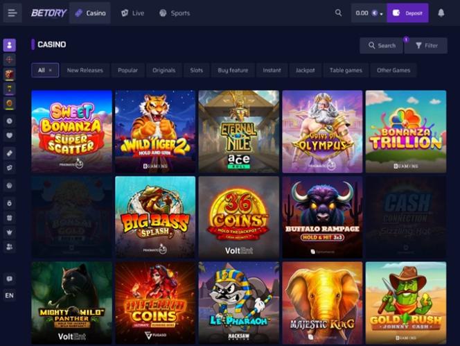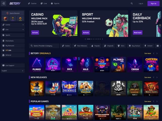 Betory是一家支持加密货币的在线赌场和体育博彩网站,提供数量惊人的游戏。无论您喜欢玩老虎机、二十一点、百家乐和掷骰子等桌面游戏,还是投注重大体育赛事,您都能在这里找到乐趣!