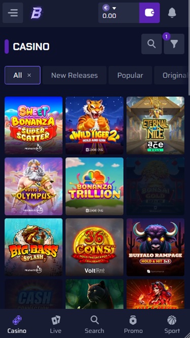 首页顶部专门展示赌场和体育博彩的最新优惠活动。向下滚动浏览主页,您会发现所有游戏都按类别划分,方便您快速找到心仪的游戏。当然,您也可以使用搜索栏搜索您喜欢的游戏、游戏提供商和游戏类别。