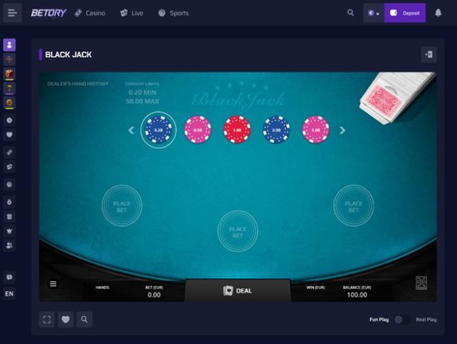 得益于 Betory 提供的真人娱乐场,真人游戏的选择也绝不会让人失望,其中包括皇家轮盘、真人蛇梯棋、宝藏岛、单二十一点、经典百家乐、真人大富翁等等!