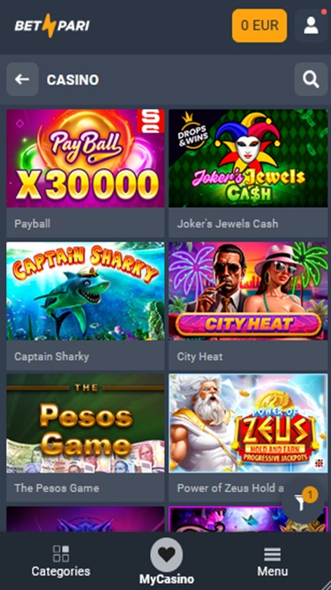 因此,我们通常建议您务必了解特定赌场品牌获得了哪些软件提供商的许可。就 BetPari 而言,玩家无需担心游戏种类,因为该品牌已获得 80 多家独立软件开发商的许可。