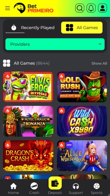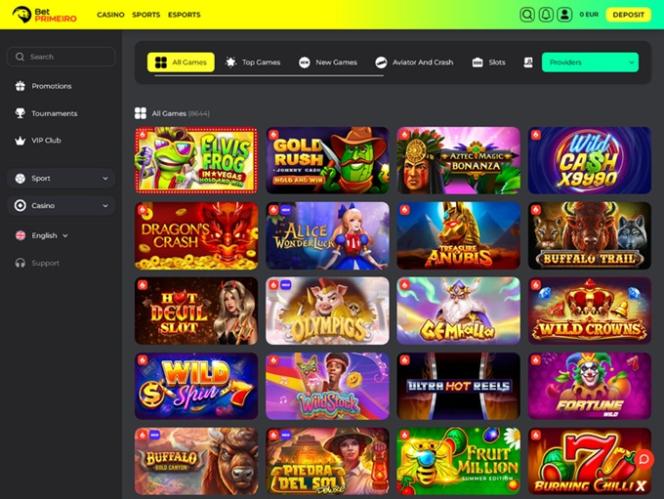 BetPRIMEIRO 在这方面绝对不会令人失望,该品牌已获得超过 90 家独立软件提供商的授权,并提供数千款游戏供您探索。玩家将可以畅玩各种类型的海量热门游戏,以及数百款值得探索的隐藏宝藏。
