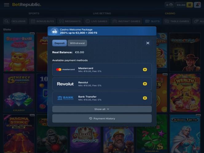 BetRepublic 在线赌场由一群游戏爱好者创建,旨在为客户提供最佳的游戏体验,其设施齐全,可同时满足赌场玩家和体育博彩爱好者的需求。