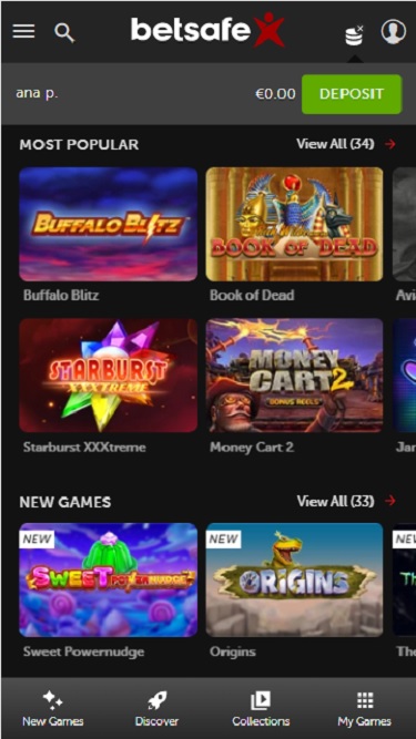 Betsafe 赌场由 Microgaming, Net Entertainment, Playtech, 1x2gaming, Barcrest, Big Time Gaming, ELK Studios, Evolution Gaming, EYECON, Genesis Gaming, Habanero Systems, iSoftBet, lightningboxgames, Novomatic, Oryx, Play'n GO, playson, Quickspin, Rabcat, Relax Gaming, Thunderkick, Yggdrasil, Endorphina, Wazdan, Realistic Games, GameArt, Betgames, Booming Games, Stakelogic, Pragmatic Play, Nolimit City, Felt Gaming, Red Tiger Gaming, IGT, Red Rake Gaming, Skillzzgaming, Fantasma Games, FunFair, SYNOT Games, FUGA Gaming, Kalamba, Sigma Gaming, Skywind, Triple Edge Studios, Northern Lights Gaming, Stormcraft Studios, Switch Studios, Electric Elephant Games, Pocket Games Soft, Bulletproof Games, All41 Studios, Gluck Games, Gameburger Studios, Pulse 8 Studios, Neon Valley Studios, Golden Rock Studios, Spearhead Studios, Shuffle Master, SpinPlay Games, Real Dealer Studios, GONG Gaming, Blue Guru Games, Lady Luck Games, Buck Stakes Entertainment, Design Works Gaming, Games Global, Wizard Games, 2by2 Gaming, Ainsworth, Ash Gaming, Bally Technologies, bluberi, Blueprint Gaming, Greentube, Leander Games, NextGen, Pariplay, Push Gaming, WMS, Inspired Gaming, Genii, SG Interactive, Gamomat, Red7Mobile, CORE Gaming, Scientific Games, RFranco Group, Side City Studios, Reel Time Gaming, MGA, Bally Wulff, Iron Dog Studio, Old Skool Studios, Foxium, Just For The Win, The Games Company, Reflex Gaming, MetaGU, PearFiction Studios, Apollo Games, Wild Streak Gaming, Slingshot Studios, Fortune Factory Studios, Jade Rabbit Gaming, RubyPlay, 4ThePlayer, AvatarUX, Gamevy, Crazy Tooth Studio, NetGaming, High 5 Games, YoloPlay, ReelPlay, Alchemy Gaming, Rarestone Gaming, BB Games, Snowborn Games, Boomerang Studios, Hacksaw Gaming, Max Win Gaming, Gold Coin Studios, Bang Bang Games, Slotmill, SilverBack Gaming, Peter And Sons, Eurostar Studios, Aurum Signature Studios, Lucksome Gaming, Religa, Area Vegas, RAW iGaming, Apparat Gaming, INO Games, Live 5, Indigo Magic, Kitsune Studios and Sneaky Slots提供支持,其虚拟游戏库中提供了数百款游戏。玩家还可以通过该网站找到体育博彩、扑克和真人荷官游戏。