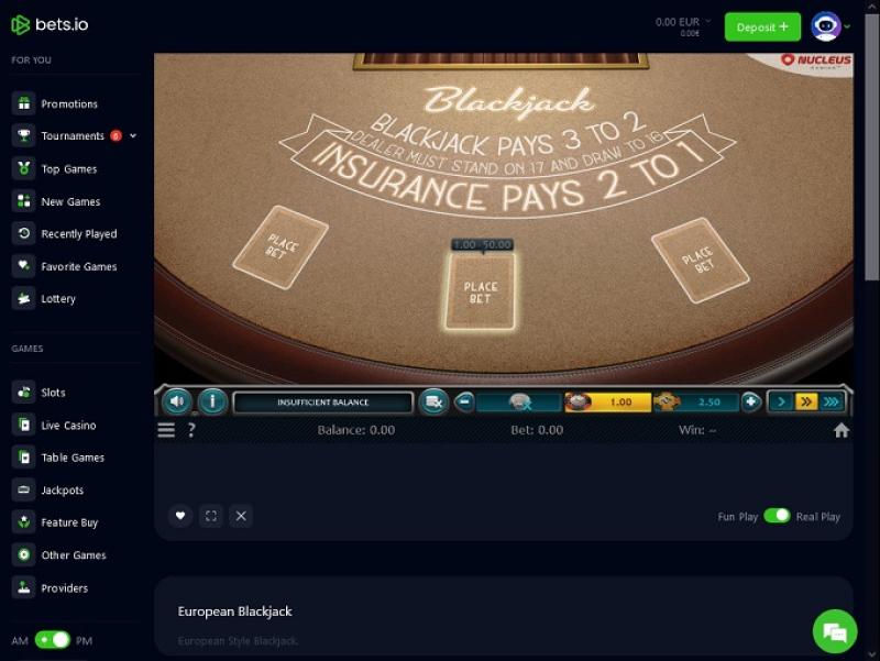 bets.io Casino Blackjack (Nucleus Gaming)展开
