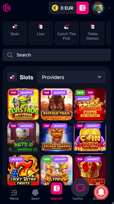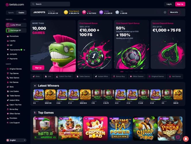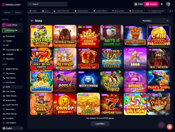 Betsio.com 提供超过五千种老虎机游戏,在线老虎机部分包含众多精彩游戏,例如:Bonanza Billion、Elvis Frog in Vegas、Jasmine's Treasures、Fire in the Hole 3、Chance Machine 20、Blast the Bass、Egypt Sun Deluxe、Wild Coaster、Buffalo Trail、3 Luxor Pots: Hold and Win、Zeus Fortune、Max Miner、Dynamite Dwarfs、Mega Cash Amplifier、Crypto Gold、Fortune Coins、Book Of Aphrodite、Wild Bandito……