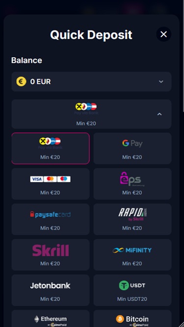 - 请注意,由于加密货币的性质,存款限额不适用于通过加密货币支付系统充值的资金。如果您希望使用存款限额,则需要选择其他支付选项。