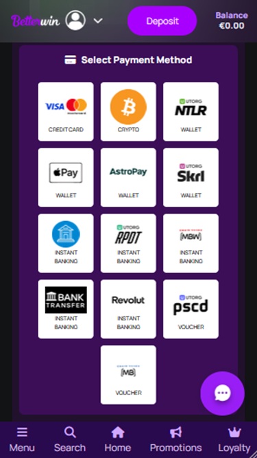 无论您是通过个人电脑访问 BetterWin,还是在手机或任何其他便携式设备上玩游戏,您的体验都会很好,因为运营商确保赌场内容针对所有设备进行了优化。