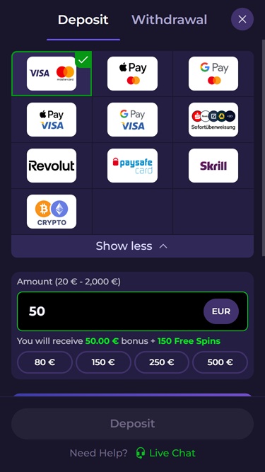赌场、真人娱乐场和体育板块均设有独立的下拉菜单,方便您快速找到自己喜欢的游戏和体育项目。如果您喜欢电子竞技,这里还有一个单独的电子竞技板块!