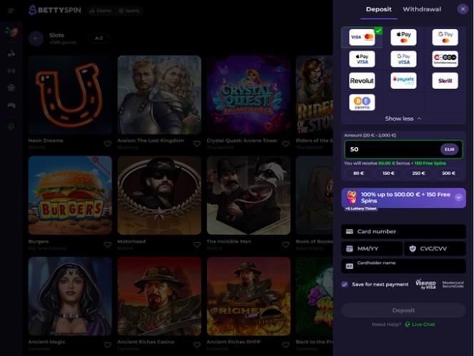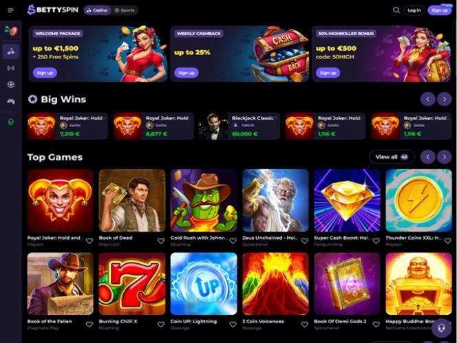 Bettyspin 是一家接受加密货币的在线赌场和体育博彩公司,由库拉索博彩管理局授权和监管。无论您喜欢在线老虎机、二十一点、轮盘赌还是任何其他赌场游戏,都能在这里轻松找到。