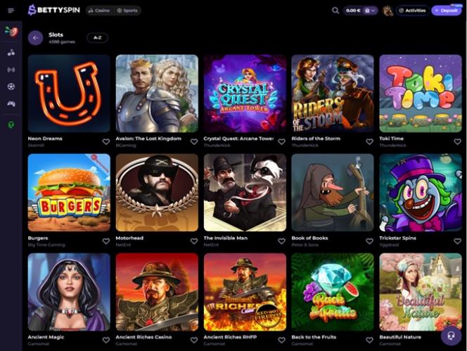 Bettyspin提供丰富多样的游戏,包括种类繁多的老虎机游戏。其中包括众多业内知名供应商的游戏,例如BGaming 、Thunderkick、Mascot Gaming、Endorphina、Reflex Gaming、 Amusnet Interactive 、Push Gaming 等等!