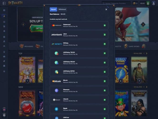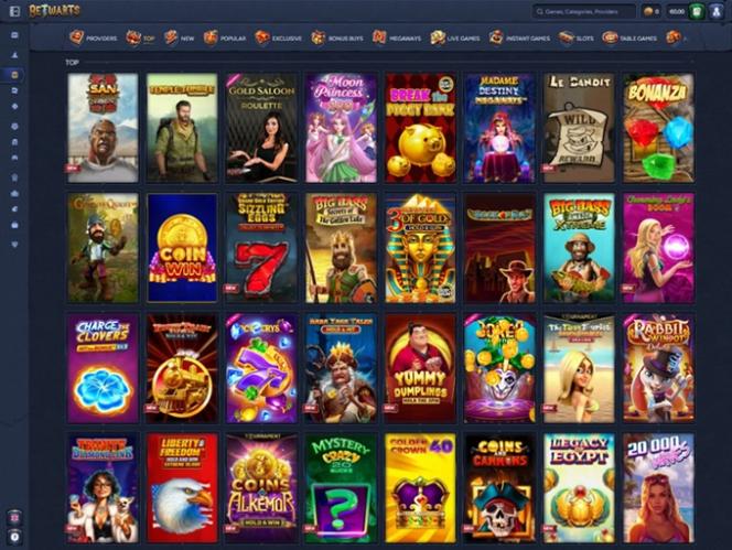 例如,在 Betwarts 赌场,您可以畅玩由 130 多家软件开发商开发的游戏,这意味着您将有机会体验数千款高质量的游戏,这些游戏的机制、功能和主题各不相同。游戏目录极其丰富,每位玩家都能找到自己想要的游戏。