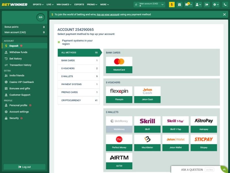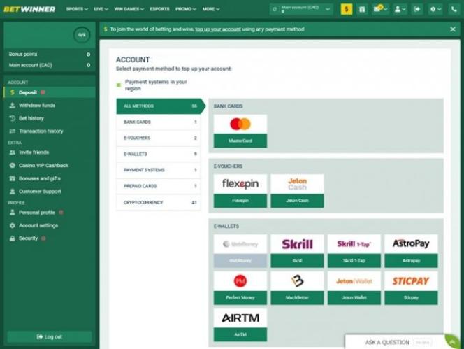 除了常规赌场外,BetWinner 还为客户提供真人荷官赌场、体育博彩和扑克室。