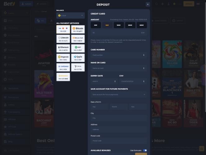 要成为 Bety.com 的赌场会员并注册新账户,您只需完成一个简单的步骤和一封快速的电子邮件确认即可。这将为玩家提供对玩家控制面板和赌场服务的完全访问权限,以及诸如四个级别的忠诚俱乐部、各种赌场奖金和促销活动、丰富的游戏库等等。
