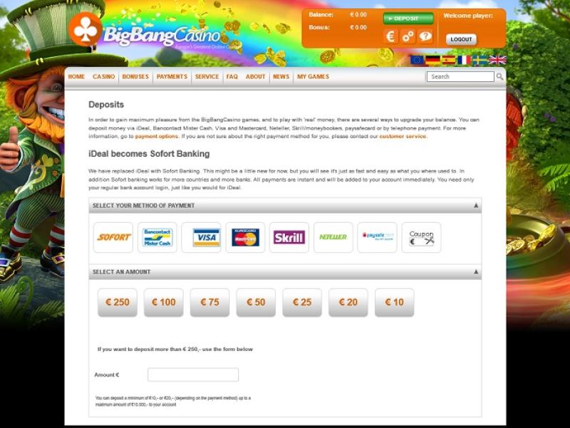 BigBang Casino 是一个在线博彩网站,成立于 2007 年,由 Reload NV 拥有和运营。该赌场运营已有一段时间,并因其庞大的游戏库和快速的支付速度而获得了玩家的积极反响。