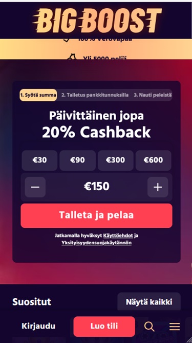 BigBoost Casino 是一家在线赌场,由一家根据库拉索法律注册成立的公司所有。该公司持有 Antillephone NV 的牌照并受其监管,面向芬兰客户。