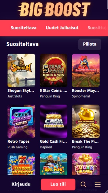 这个在线游戏品牌拥有由一些iGaming行业领军人物以及众多新兴创意游戏工作室开发的赌场游戏。虽然老虎机是最主要的游戏类别,但其他游戏也同样包含一流的内容。快来体验BigBoost的大厅吧!