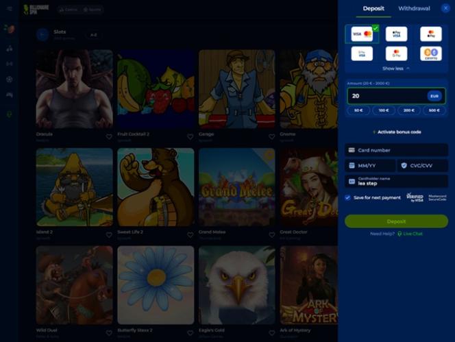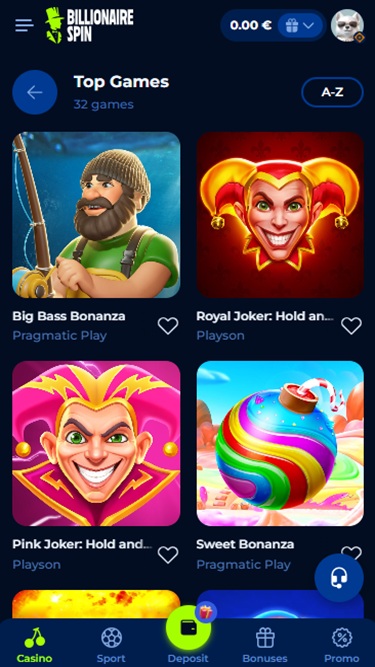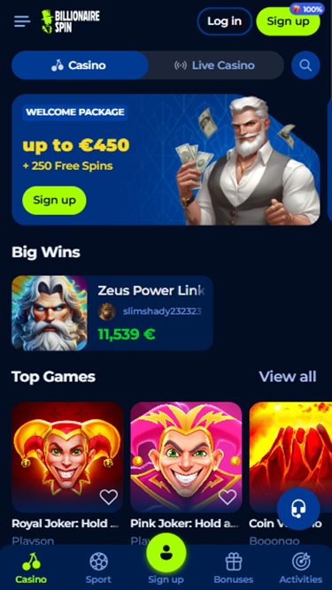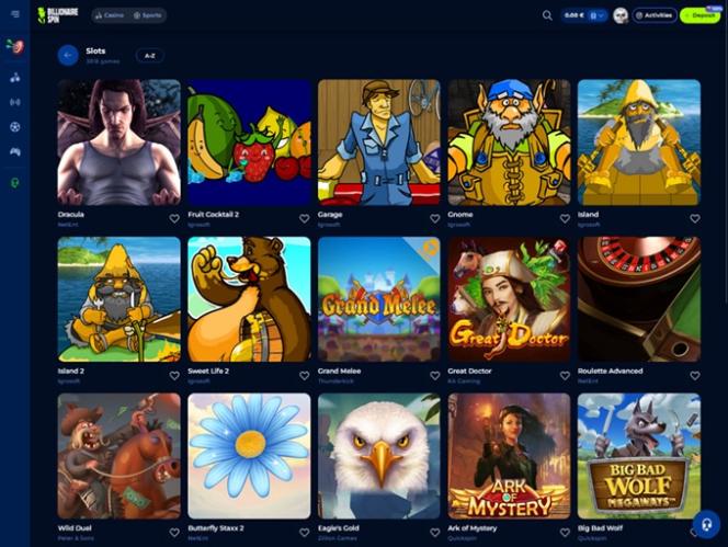 Billionaire Spin 团队似乎深谙此道,因此这家赌场成功获得了 70 多家独立软件提供商的授权,让您可以随时体验数千款独特的游戏。游戏目录丰富多样,我们相信玩家可以轻松找到自己想要的游戏。