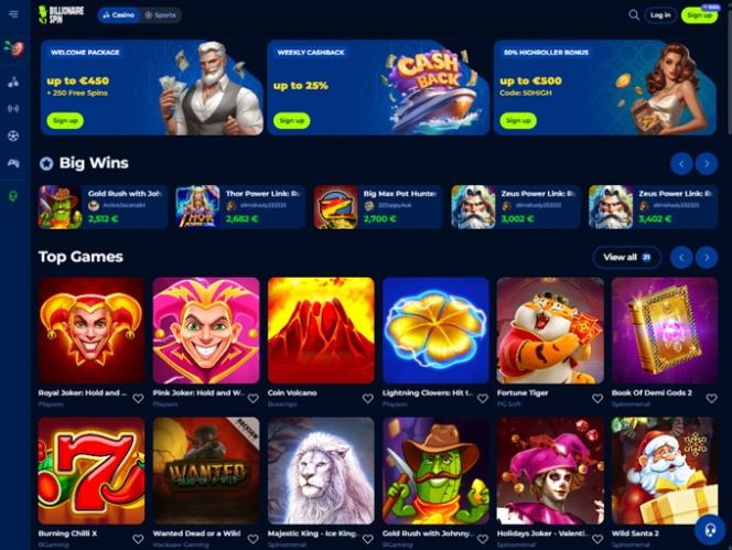 Billionaire Spin 于 2025 年上线,是一个全新的博彩网站,为玩家提供丰富的赌场游戏,包括真钱老虎机、真人荷官、速成游戏和刮刮卡,以及一个提供丰富选项的大型体育博彩板块。该品牌提供强大的促销计划和丰富的奖金,并为寻求更现代支付方式的玩家提供加密货币支付服务。