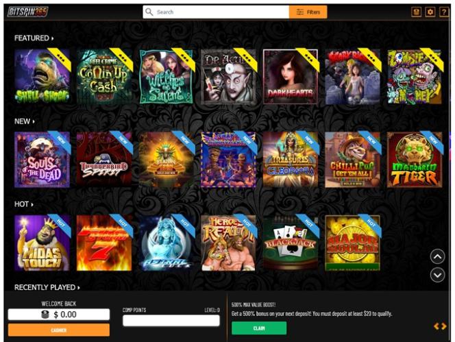 Bitspin365 团队为用户积累了丰富的赌场游戏库,提供丰富多样的游戏和活动。虽然还有很多改进空间,但 500 多款游戏足以满足大多数美国玩家的需求。
